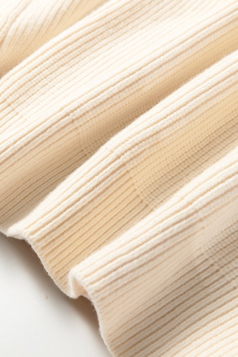 • Matériau : Fabriqué en tricot côtelé de qualité supérieure, ce pull offre une texture extensible qui garantit confort et flexibilité.