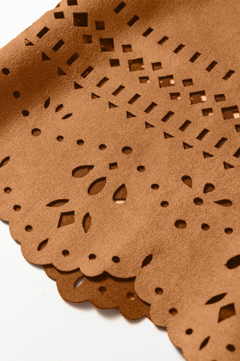 Faites une entrée remarquée avec la veste rétro en faux suède unie Thai Curry à détails évidés. Cette pièce magnifique allie charme rétro et polyvalence moderne, ce qui la rend parfaite pour être superposée à n'importe quelle tenue. Que vous sortiez pour un brunch, une soirée en ville ou simplement pour faire des courses, cette veste ajoute une touche d'élégance sans effort à votre look. Les détails évidés uniques rehaussent son attrait visuel, en faisant un choix remarquable pour celles qui apprécient le style sophistiqué. Avec son design uni, cette veste se marie parfaitement avec une variété de styles, garantissant que vous avez toujours l'air chic et à la mode.